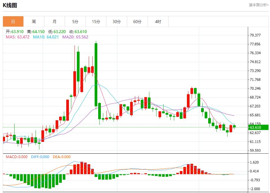 Pasar minyak mentah: Sehingga 20:23 Beijing, minyak A.S. jatuh, sekarang pada 63.590, penurunan sebanyak 0.53%. Sebelum Bursa Saham New York, harga (minyak mentah) jatuh dalam perdagangan intraday terakhir. Selepas mencapai tahap overbought, ia membentuk perbezaan negatif pada (RSI). Tekanan negatif terhadap perdagangannya di bawah EMA50 berterusan, dan trend menurun jangka pendek dikuasai, menguatkan senario penurunan.